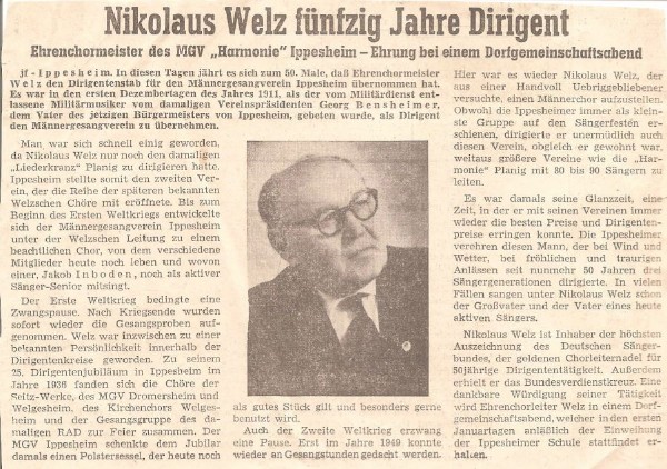 Chorleiter Nik. Welz